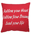 Een stijlvol kussen met de tekst 'Follow' in een opvallend design. Perfect voor een moderne en trendy inrichting. Afmeting: 45x45 cm. Kleur: Rood. Gemaakt van [materiaal, bv. zacht velours of katoen]. Brengt een vleugje persoonlijkheid en karakter in je interieur.