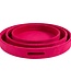 Deze prachtige set van drie ronde dienbladen in een rijke fuchsia fluweel look voegt een vleugje luxe toe aan uw interieur. Perfect voor het serveren van hapjes, drankjes of het presenteren van decoratieve items. De set bestaat uit drie verschillende maten: 30cm, 38cm en 45cm diameter, waardoor ze veelzijdig inzetbaar zijn. Het fluweelachtige oppervlak geeft een gevoel van comfort en elegantie. Een stijlvolle en praktische aanvulling op uw huis!
