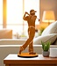 Het beeld is met de hand gemaakt van stevig 1,5 mm dik metaal en rust op een ronde basisplaat die stabiliteit biedt, zowel binnenshuis op dressoirs als buitenshuis op terrassen. De rustieke afwerking geeft het beeld een authentieke vintage uitstraling met een prachtige roestige patina.