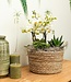 Met deze prachtige orchideeën schaal ben jij direct klaar. Deze rieten mand is opgemaakt met drie orchideeën (potmaat 9cm) en drie Rhipsalis plantjes (potmaat 6cm). De mand is gemaakt van riet en heeft hierdoor een natuurlijk uitstraling. De mand is uitgerust met een ingebouwd watergeefsysteem (inlay). De orchideeën in de schaal worden geleverd met een watergeeflont. Door een waterlont te gebruiken, hoef je de orchideeën minder vaak uit de schaal te halen. Hierdoor gaan je orchideeën nóg langer mee.Inhoud van de set:- Kolibri Home Reed Basket- 3x Kolibri Orchids mineral- 3x Kolibri Greens Rhipsalis- 3x Watergeeflont- Tillandsia- Inlay met watergeef reservoir*omdat wij werken met levende producten kunnen de afgebeelde soorten kleine afwijkingen hebben van de foto’s. merk: Kolibri Company Gemaakt in: NL EAN/streepjescode: 8785279219149 SKU: 2595