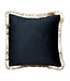 kussen fluweel gouden franjes zwart 45x45cm