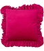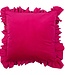 Luxueus fluweel kussen in een prachtige fuchsia kleur. Het kussen (45x45cm) heeft een elegante rouche/rozet afwerking voor een extra touch van stijl en comfort. Perfect als decoratiekussen op de bank, fauteuil of bed. Geniet van de zachte textuur en rijke kleur van dit hoogwaardige kussen.
