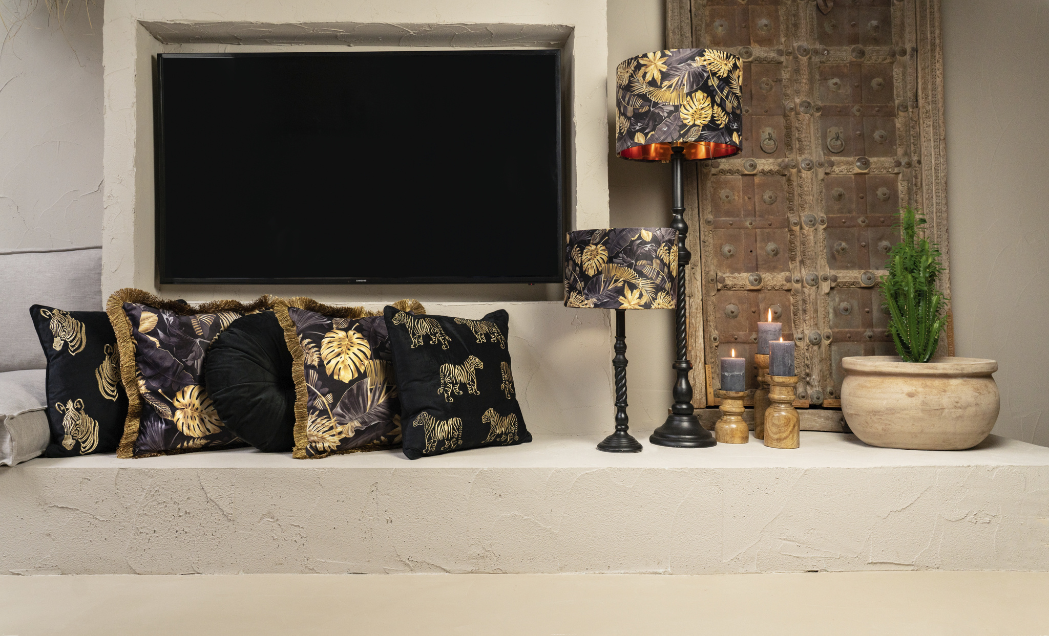 Goud is terug in het interieur in combinatie met zwart en fluweel straalt rust luxe en stijl uit.
