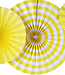 Een vrolijk set van 3 gele papieren waaiers, perfect voor feesten, bruiloften, zomerse decoratie of gewoon om een vleugje kleur toe te voegen aan je interieur. De waaiers zijn lichtgewicht en eenvoudig te gebruiken. Creëer een feestelijke sfeer met deze elegante en kleurrijke toevoeging!