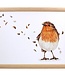 Fraaie print van een roodborstje met dwarrelende veertjes
