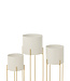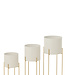 Set van 3 bloempotten rond ijzer goudkleurig/wit