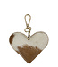 sleutelhanger koehuid hart bruin/wit small 9cm goud