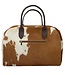 Deze ruime en stijlvolle weekendtas met een vrolijk koeienprint is perfect voor een weekendje weg of een dagje uit. De bruine kleur geeft de tas een tijdloze uitstraling. Met afmetingen van 50x35x15cm biedt hij voldoende ruimte voor al je benodigdheden. De tas is gemaakt van [materiaal - vul aan, bv. stevig canvas] en is daardoor duurzaam en gemakkelijk schoon te maken. De 'Bos taurus taurus' aanduiding verwijst naar de wetenschappelijke naam van de koe, wat de unieke print extra benadrukt. Een leuke en praktische tas voor iedereen die van koeien houdt!