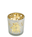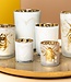 Creëer een warme en sfeervolle ambiance met dit kleine windlicht Bij Goud. Met een diameter van 8cm is het perfect voor kleine ruimtes, vensterbanken of als decoratief element op een tafel. Het elegante design, met zijn subtiele gouden accenten, voegt een vleugje luxe toe aan elk interieur. Gebruik het met een theelichtje voor een zacht en romantisch licht. Een prachtig cadeau voor jezelf of een geliefde.