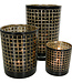 Creëer een warme en sfeervolle ambiance met dit grote windlicht in het zwart met blokjespatroon. Met een hoogte van 18cm is dit windlicht een echte eyecatcher in uw interieur. Het tijdloze design past in diverse woonstijlen en is perfect voor het plaatsen van een kaars of theelichtje. Geniet van het sfeervolle licht en de warme gloed die het windlicht uitstraalt. De stevige kwaliteit zorgt voor langdurig gebruiksplezier.